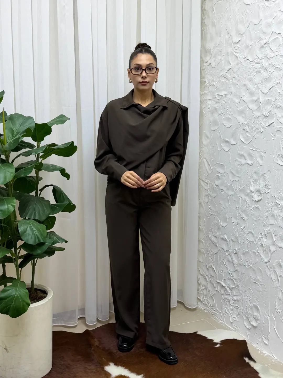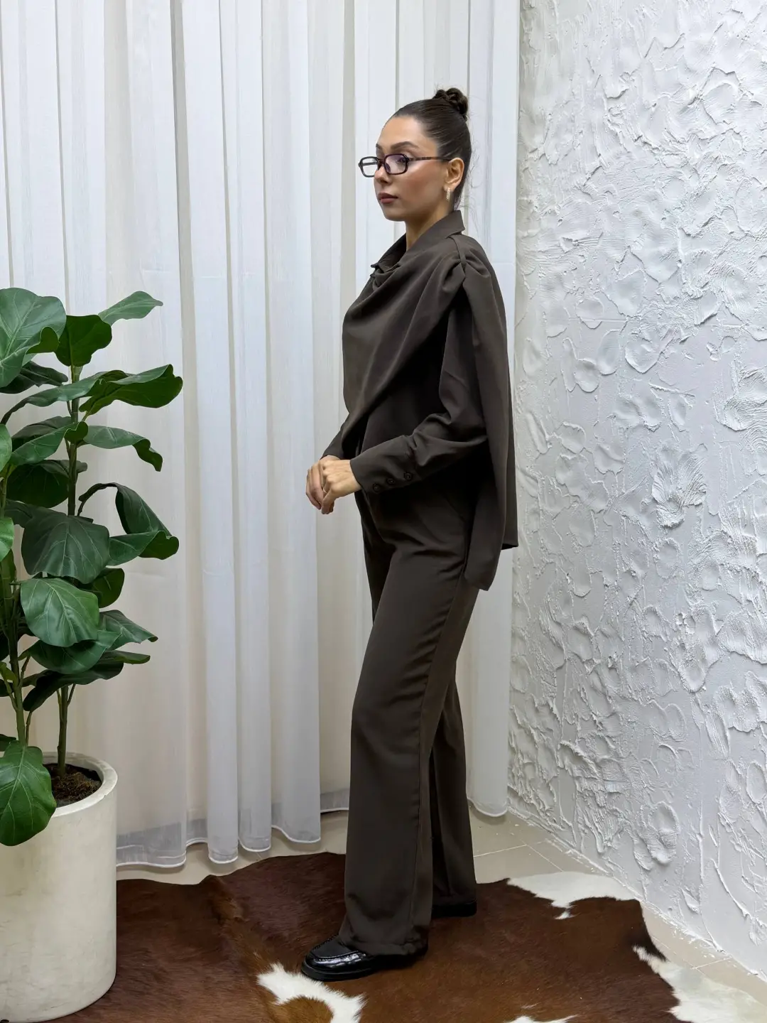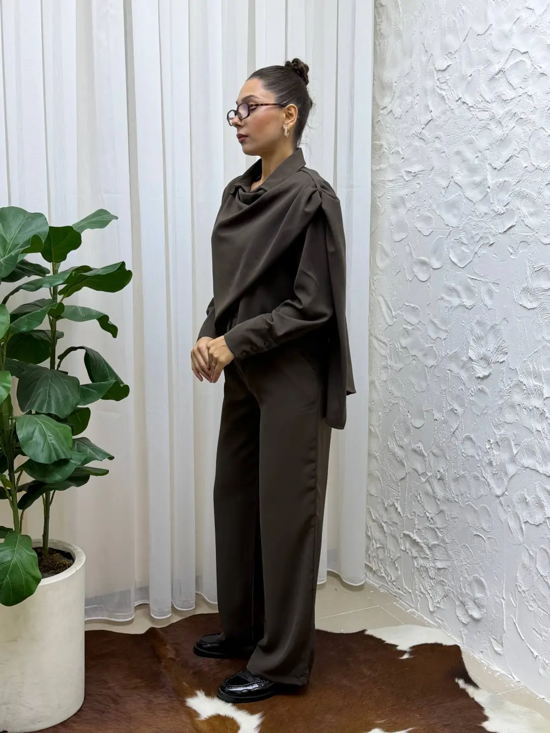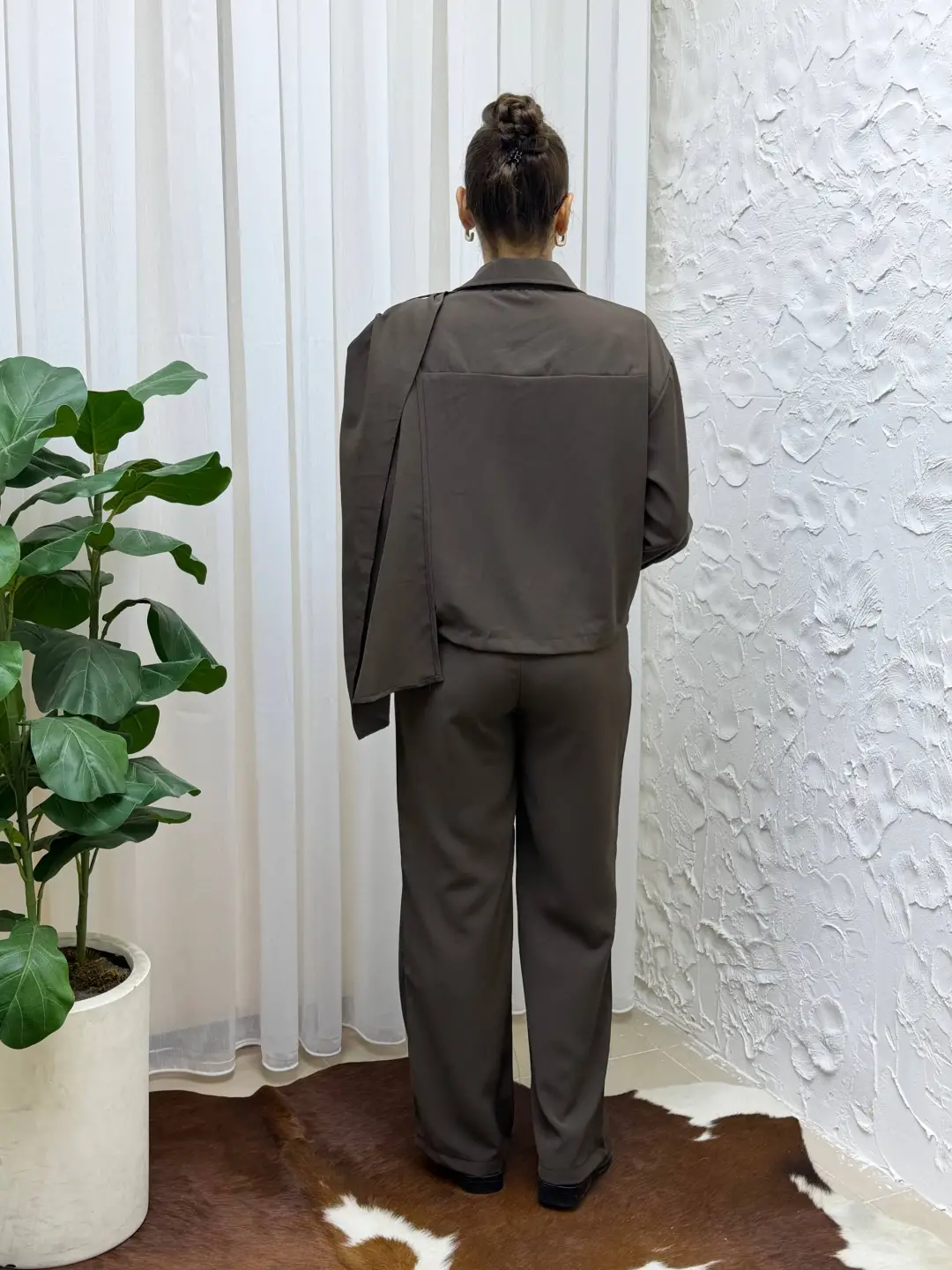 Tienderopa'nın şık ve modern tasarımı olan Dökümlü Kumaş Asimetrik Ceket Gömlek & Palazzo Pantolon Set'i ile tarzınızı yansıtın. Bu takım, özel günlerde ve günlük hayatta şıklığı yakalamak isteyen kadınların tercihi olacak.